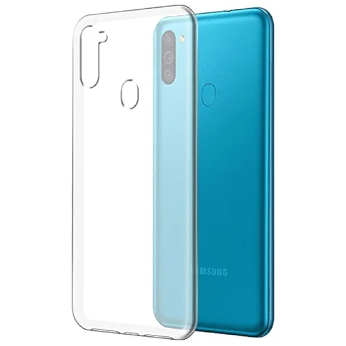 Slim transparent TPU case for Galaxy M11 with shockproof corners and camera protection.